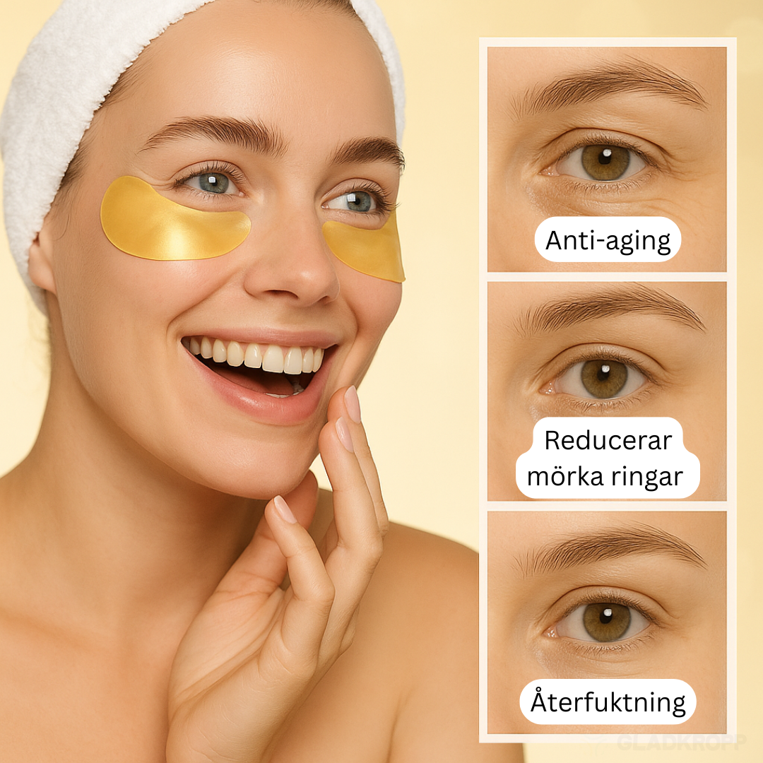 Lyxig 24K guld- och kollagenögonmask, designad för att ge din hud en ungdomlig lyster och fasthet. Berikad med kraftfulla ingredienser som hyaluronsyra, retinol och peptider, arbetar denna mask för att minska synligheten av fina linjer, mörka ringar och trötthetstecken under ögonen.