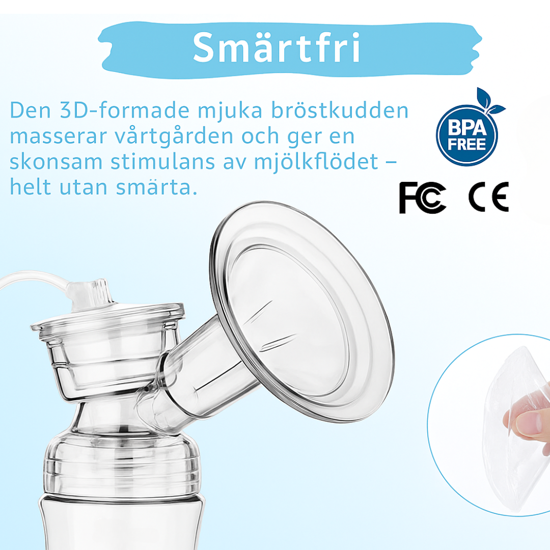 Smidig och effektiv bröstpump med både sug- och massageläge för skonsam och kraftfull pumpning. Tillverkad i livsmedelsgodkända material med anti-refluxdesign och enkel knappstyrning. Perfekt för dig som vill pumpa bekvämt, hygieniskt och utan smärta.