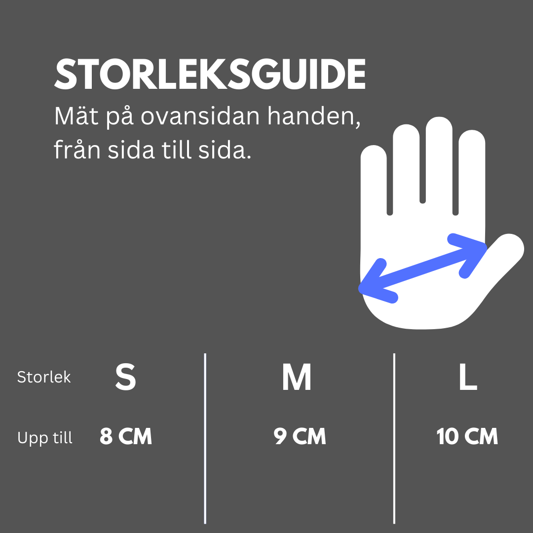 Varje förpackning innehåller ett par handskar (en höger och en vänster) för att ge full täckning och stöd till båda händerna.